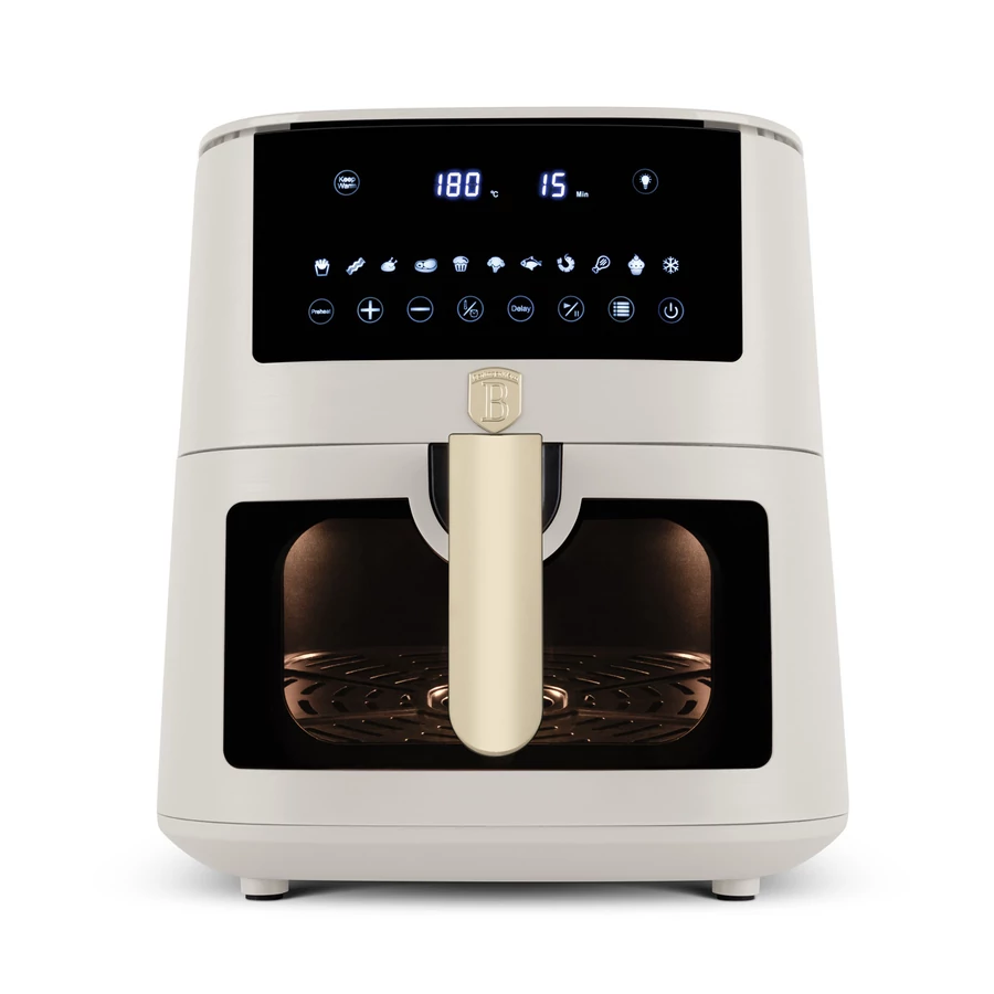 - A matt krém színű készülék elegáns megjelenést kölcsönöz a konyhának, míg a csúszásmentes lábak biztosítják a stabilitást használat közben. Az átlátszó ablak lehetővé teszi, hogy folyamatosan figyelemmel kísérje az étel elkészülését.Az AirFryer átlátszó ablakkal (8 L) a Sahara Collection részeként nemcsak praktikus, hanem stílusos kiegészítője is lesz konyhájának, amelyet nem kell elrejtenie a fiókok mélyén.