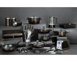 - A sötét szürke-fekete, kalapács hatású felület elegáns megjelenést kölcsönöz a készletnek, amely bármely konyhai stílushoz illeszkedik.