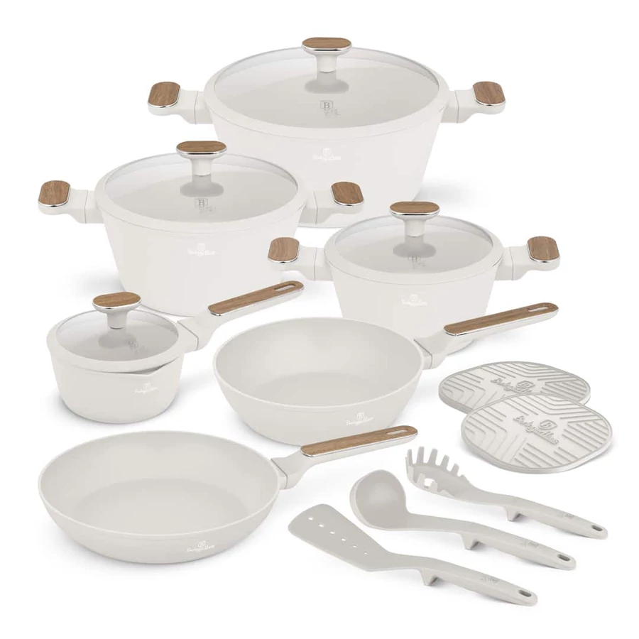 A Berlinger Haus BH8325 Sahara Nordic 15 részes edénykészlet mindent kínál, amire a mindennapi főzéshez szükséged lehet. Minimalista skandináv dizájnjával, matt krémszínű színben és fahatású fogantyúkkal ötvözi az eleganciát a kivételes funkcionalitással.