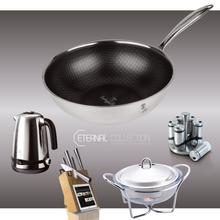 Az Eternal termékcsaládunk azoknak készült akik nem hajlandók kompromisszumot kötni. Ebben a kollekcióban az összes serpenyőnk és lábosunk sütőfelülete lézergravírozott rozsdamentes acél rácsokból áll, amelyet gyémántszemcsés tapadásmentes bevonat borít. Ennek köszönhetően a sütőfelület szinte megkarcolhatatlan és örök életű. Az ETERNA bevonattal készült termékeinkre +1 év garanciát vállalunk.