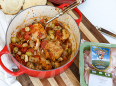 A BK Bourgogne öntöttvas lábasban hevítsük fel az olívaolajat. A csirkedarabokat pirítsuk aranybarnára minden oldalukon, majd tegyük félre. A visszamaradt zsiradékban dinszteljük meg a hagymát, fokhagymát és répát. Öntsük rá a bort, majd forraljuk fel, hogy az alkohol elpárologjon. Tegyük vissza a csirkét, adjuk hozzá az alaplevet és a fűszereket. Fedő alatt, alacsony hőfokon pároljuk kb. 45 percig, amíg a hús omlós nem lesz. Az eredmény egy szaftos, aromákban gazdag étel, amelyet közvetlenül a lábasból, forrón tálalhatunk az asztalra.