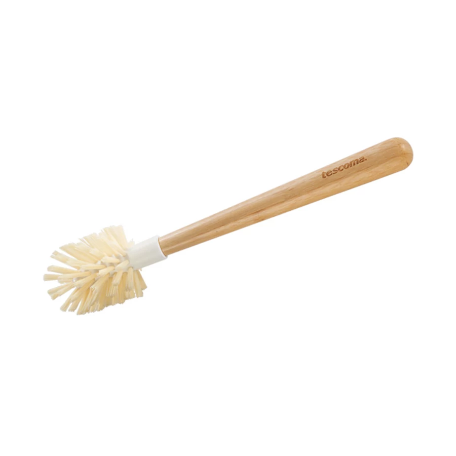 Kiválóan alkalmas kíméletes mosogatáshoz. A rugalmas sörték minőségi hőálló nejlonból készültek, a nyél anyaga nagy nedvességtaszító tulajdonsággal rendelkező természetes bambusz.