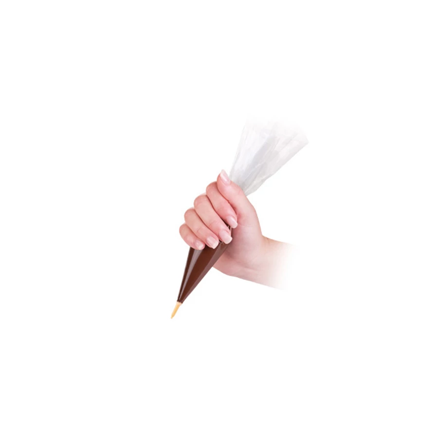 Kiválóan alkalmas mézeskalácsok, torták, muffinok stb. vékony vonallal történő díszítésére. A zsákot töltse meg cukormázzal vagy olvasztott csokoládéval, majd enyhén összenyomva díszítsen. Ellenálló műanyagból készült.