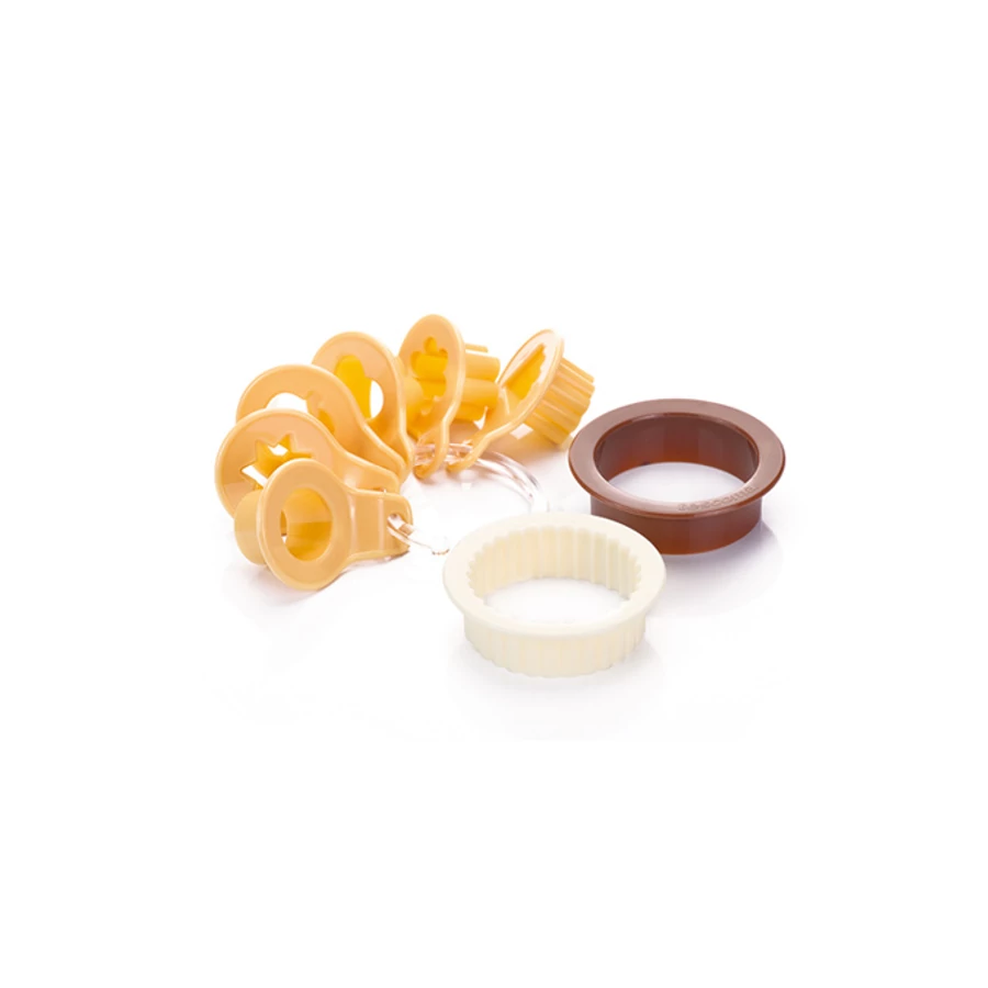 Kiválóan alkalmas eredeti linzer teasütemények kiszúrására. Két gömbölyű kiszúró egyenes és hullámos széllel és hat mini kiszúró hagyományos motívumokkal a középső rész kiszúrására. Karikára helyezve, az átlátható elraktározáshoz. Első osztályú ellenálló műanyagból készült, mosogatógépben tisztítható. 3 év garancia.