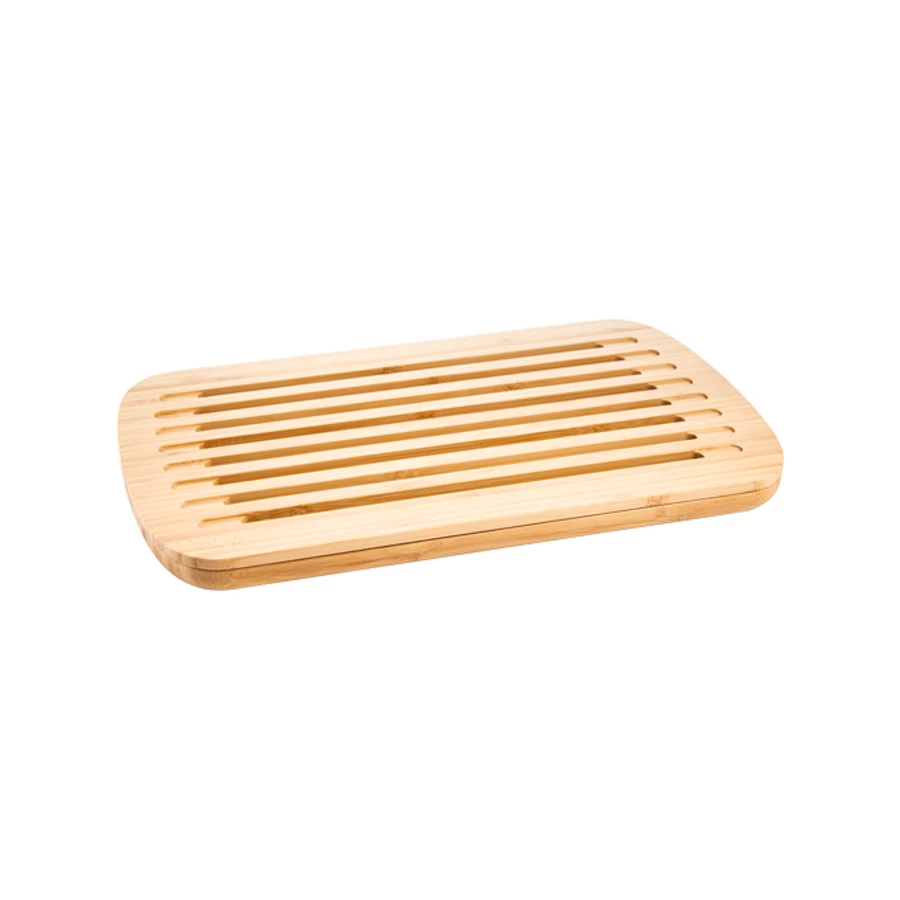 Masszív, kétrészes vágódeszka természetes, magasan ellenálló bambuszból, kiválóan alkalmas a kenyér és pékáru kényelmes szeletelésére. Tágas vágófelület nyílásokkal, amelyek felfogják a morzsákat, amik a deszka aljából könnyen kiszórhatóak. Csúszásmentes kiegészítéssel ellátott a kényelmes és biztonságos használat érdekében. Tisztítsa nedves törlőronggyal, ne mossa mosogatógépben. 3 év garancia.
