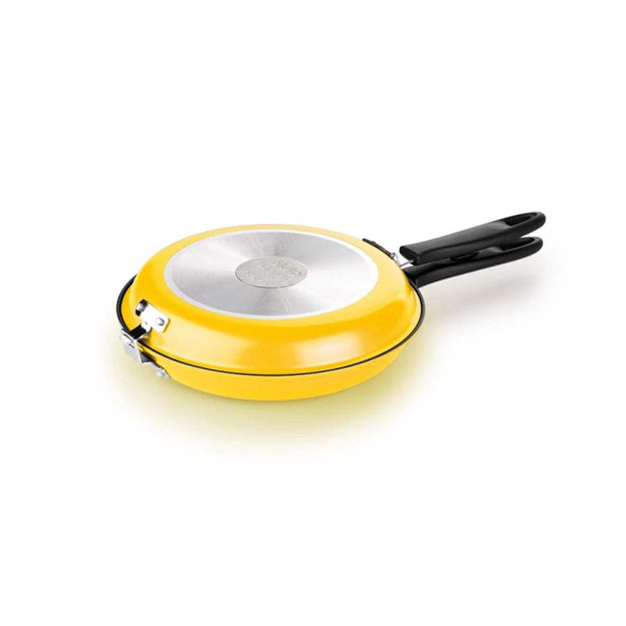Első osztályú kétrészes serpenyő az ételek könnyű és gyors kétoldali sütéséhez és párolásához. Kiválóan alkalmas tortilla, frittata és has. típusú magas omlettek, töltött táskák, zöldséges és rizses ételek stb. elkészítéséhez. Két különálló klasszikus serpenyőként is használható. Minőségi tapadásmentes bevonattal ellátva az odaégés ellen, elektromos, gáz és üvegkerámia tűzhelyekhez egyaránt alkalmas, mosogatógépben mosható. 3 év garancia.