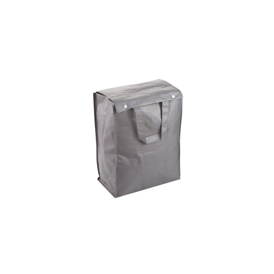 Tágas (26 l) táska a háztartási hulladék szelektálására. Csúszóbetétes zárral ellátott fedél, erős fülek a kényelmes hordozás érdekében és átlátszó zseb a megkülönböztető címkékhez. A táska acél fűzőkarikákkal kampókra akasztható, illetve két vagy több táska is összekapcsolható. Tartós, szintetikus textíliából, ellenálló műanyagból és minőségi acélból készült, 4 megkülönböztető címkével kapható. Tisztítsa nedves törlőronggyal és szárítsa meg, ne mossa mosógépben, illetve ne tegye szárítógépbe. 3 év garancia.