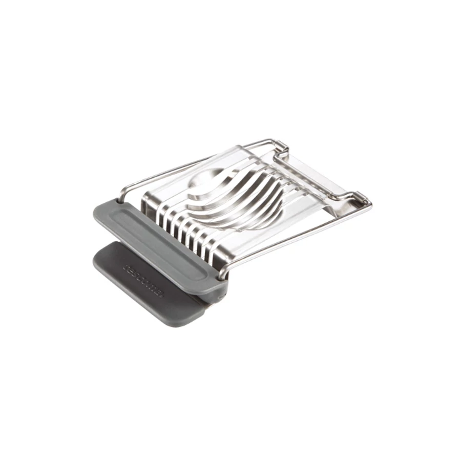 Könnyen és gyorsan szeleteli a tojást egyenletes szeletekre. Elsőosztályú rozsdamentes acélból és műanyagból készült, csúszásgátlóval. Mosogatógépbe alkalmas. 3 év garancia.